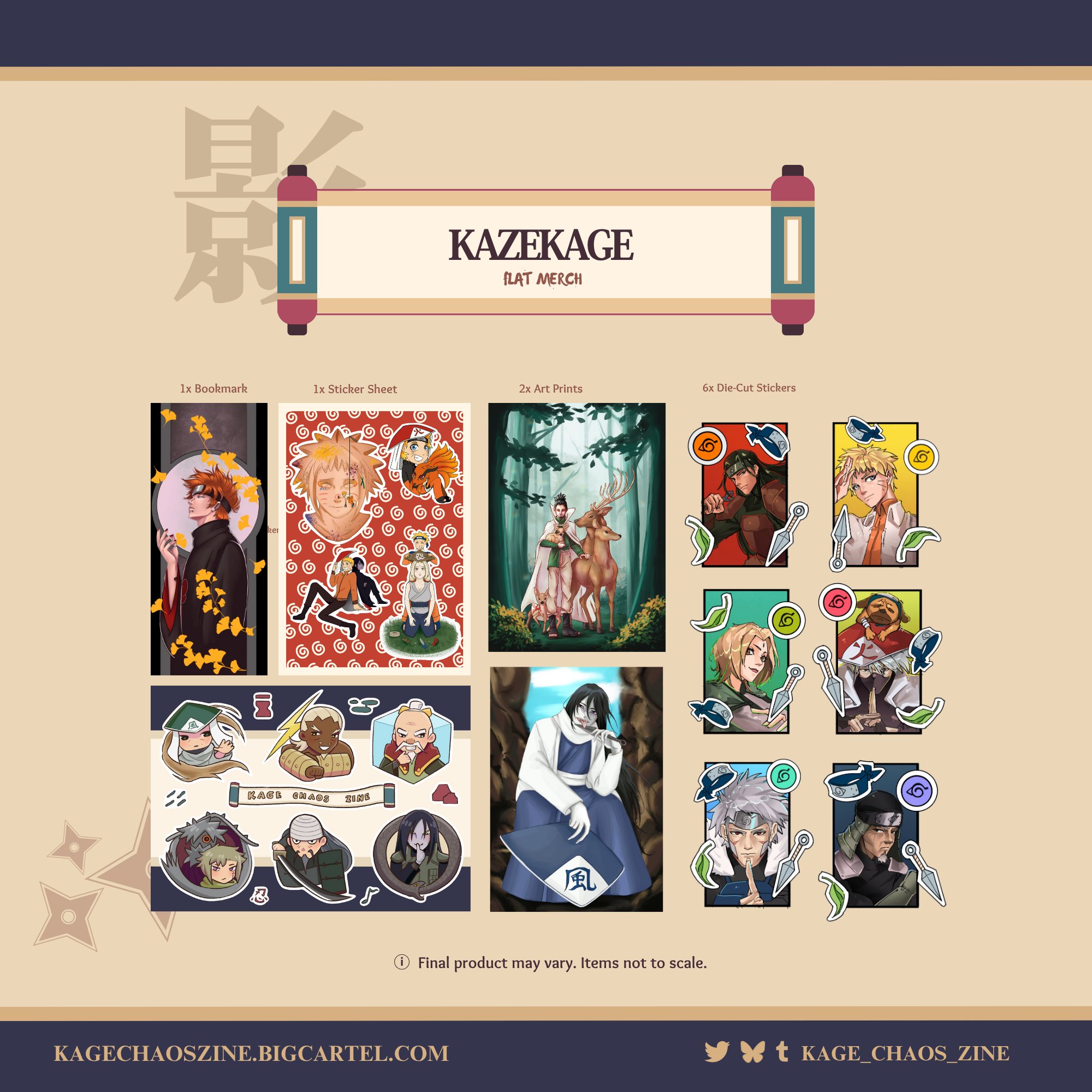 The Kazekage welcomes you to Sunagakure, where the wind carries our paper merch straight into the arms of all collectors.